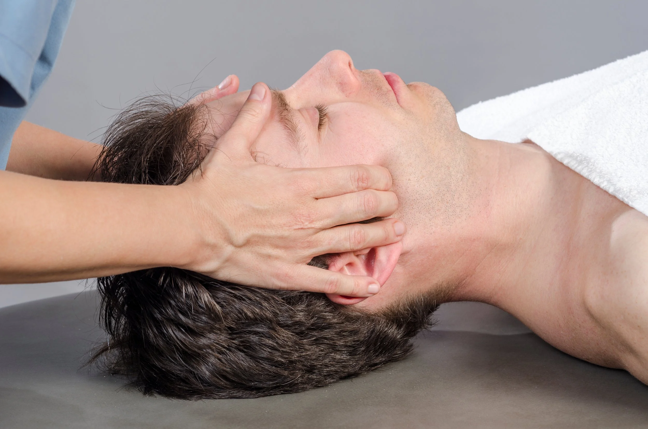Gentle joint mobilisation and soft tissue release for the jaw, temple, and upper neck